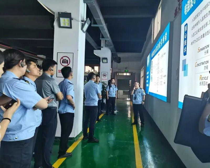 2025 年 4 月 8 日,廣州市節(jié)能環(huán)保和生態(tài)產(chǎn)業(yè)鏈工作專班成員,廣州市生態(tài)環(huán)境局監(jiān)測(cè)與科技處處長陳璟璇、副處長李錦林率隊(duì)赴東莞福天寶污水處理項(xiàng)目參觀調(diào)研,重點(diǎn)考察電鍍廢水處理及資源再生回用技術(shù)的應(yīng)用成果。廣州市生態(tài)環(huán)境局監(jiān)測(cè)處、水處、環(huán)評(píng)處、技術(shù)中心、廣州市投資發(fā)展委員會(huì)辦公室等多部門負(fù)責(zé)人,廣州市生態(tài)環(huán)境局下屬各分局主要領(lǐng)導(dǎo),以及多個(gè)企業(yè)和協(xié)會(huì)的主管領(lǐng)導(dǎo)共同參與,福天寶集團(tuán)公司總工、廣東福天寶總經(jīng)理及東莞福天寶污水處理項(xiàng)目廠長現(xiàn)場(chǎng)講解。